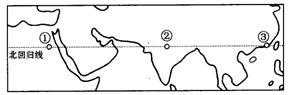 图示是位于北回归线附近两条河流的河口位置示意图,读图回答3-5题。