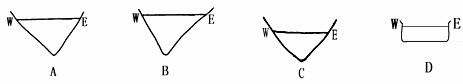16.如果该河位于中南半岛,下面四幅河床剖面示意图中,最能代表A河段的是 ( )