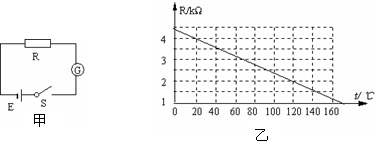 20.(15分)温度传感器广泛应用于室内空调、电冰箱和微波炉等家用电器中,它是利用热敏电阻的阻值随温度变化而变化的特性工作的.在图(甲)中,电源的电动势E=9.0V,内电阻可忽略不计;G为灵敏电流表,内阻Rg保持不变;R为热敏电阻,其电阻值R随温度t变化关系如图(乙)的R-t图线所示.闭合开关S,当R的温度等于20℃时,电流表的示数I1=2mA,问当电流表的示数I2=3.6mA时,热敏电阻R的温度是多少摄氏度?