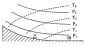 读某地某时刻气压和气温的垂直分布图(图中实线为等压线,虚线为等温线),回答7-9题