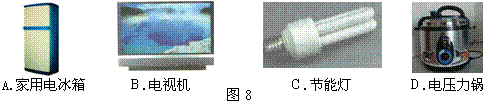 9. 如图8所示,下列用电器的额定电流最接近4A的是 [ ]