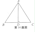 14. 如图,AD是△ABC的边BC上的高,由下列条件中的某一个就能推出△ABC是等腰三角形的是__________________。(把所有正确答案的序号都填写在横线上)