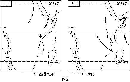4.甲区域气候一年分干、湿两季,据图判断其形成的主要因素是