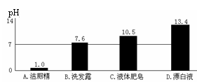 家庭常用的几种洗涤剂的pH如下图所示,其中最接近中性的是( )。