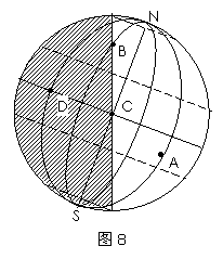 36.读太阳光照射地球示意图(图中影阴部分表示夜半球),回答下列问题:(9分)
