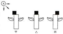 右图所示实验中,把含生长素的琼脂块,分别放在甲、乙、丙三株幼苗切面端的不同位置上,然后从左侧单侧照光,下面实验结果中不正确的是