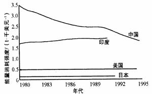 46.(4分)右图为“各国能源消耗强度(单位国民生产总值所消耗的初级能源)比较示意图”,读图回答下列问题。