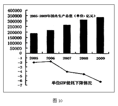 材料一:图10为2005-2009年国内生产总值及单位GDP能耗变化图