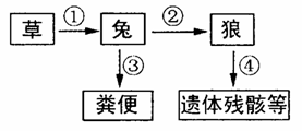 (2)在草通过光合作用固定的能量中,除图中所示的能量外,还将有三部分能量,它们分别是_______________、__________________、和未被利用的。