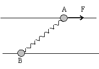 质量之比为1∶3,用一自然长度为1m的轻弹簧将两环相连,在 A环上作用一沿杆方向大小为20N的拉力F,当两环都沿杆以相同的加速度a运动时,弹簧与杆夹角为53°。(cos53°=0.6)求: