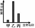 右图为一个生态系统中某些生物的相对数量关系,这些生物构成了