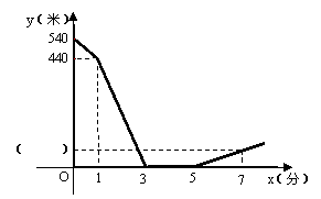 运动会前夕,小明和小亮相约晨练跑步.小明比小亮早1分钟离开家门,3分钟后迎面遇到从家跑来的小亮.两人沿滨江路并行跑了2分钟后,决定进行长跑比赛,比赛时小明的速度始终是180米/分,小亮的速度始终是220米/分.下图是两人之间的距离y(米)与小明离开家的时间x(分钟)之间的函数图象,根据图象回答下列问题: