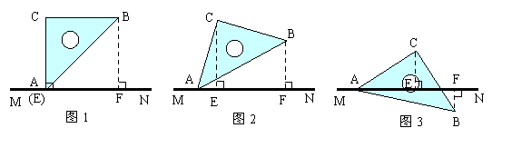 平面内有一等腰直角三角板(∠ACB=90°)和一直线MN.过点C作CE⊥MN于点E,过点B作BF⊥MN于点F.当点E与点A重合时(如图1),易证:AF+BF=2CE.当三角板绕点A顺时针旋转至图2、图3的位置时,上述结论是否仍然成立?若成立,请给予证明;若不成立,线段AF、BF、CE之间又有怎样的数量关系,请直接写出你的猜想,不需证明.