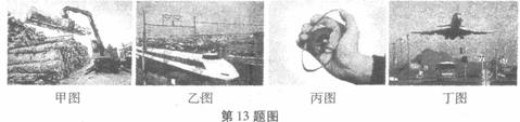 13.图中的四幅图片是生活和生产中的场景,对其能量变化的描述中,错误的是[ ]