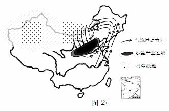 2010年3月19日,一场沙尘暴席卷了华北地区,图2为沙尘暴发生时的天气示意图。读图完成下题。
