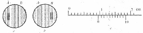 B条纹中心时(图b),1O分度游标卡尺的示数如图c所示(游标尺上10个格的总长度为 9mm).已知双缝间距离为0.2mm,从双缝到屏的距离为0.75m.则图c中游标尺的示数