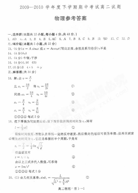 18.(8分)一列横波沿真线从A向B传播.某一刻直线上相距为S的A、B两点均处于平衡位置,且AB之间的波谷仅有一个,如图所示。若经过时间t,B恰好第一次达到波峰, 则该列波可能的波速为多大?