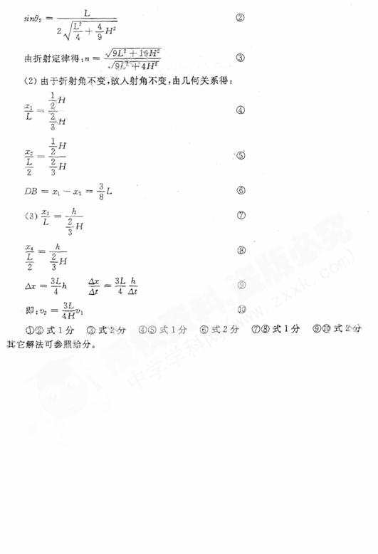 20.(14分)一个储液桶的底面直径为L.当桶内没有液体时.从桶外某点A恰能看到桶底边缘处的B点,A的高度为H,A距桶边缘的水平距离为L/2。当桶内装满某种液体时,仍沿AB方向看去,恰好可以看到桶底上的点C,CB两点问相距为L/2。