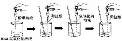(3)如下图所示,在烧杯中加入10mL氢氧化钠溶液,滴入几滴酚酞试液,溶液显 色,再用滴管慢慢滴入稀盐酸,并不断搅拌溶液,至溶液颜色变 ,此时中和反应恰好完成。接着用滴管返滴入1-2滴氢氧化钠溶液,溶液显 色,再次用滴管慢慢滴入足量的稀盐酸,溶液的颜色 ;
