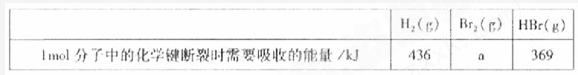 [解析]本题考查盖斯定律的计算。由已知得:Br2(l)=Br2(g) DH=+30KJ/mol,则H2(g) + Br2(g) = 2HBr(g);DH= -102KJ/mol。436+a-2×369=-102;a=―200KJ,D项正确。