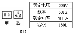 电冰箱工作时,应当使用图7中的插座_____(选填“甲”、“乙”),这是为了使电冰箱的外壳_____,保证安全工作.右表是某电冰箱的说明书中的一部分数据,它正常工作的电压是_____V,若压缩机正常工作1h,将消耗________kW·h的电能.