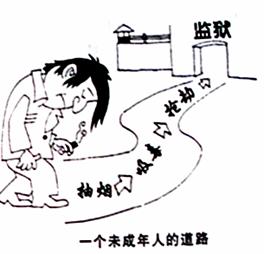 结合材料,观察右图漫画《一个未成年人的道路》,结合所学知识回答: