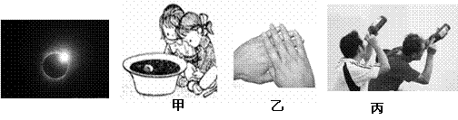 1.2009年7月22日上午,五百年一遇的罕见日全食在天空上演,我国长江流域12个省区市能见日全食,观测日全食不能用肉眼直接对着太阳,如果没有专用的太阳滤镜,可采用如下的三种简便方法。方法一:准备一盆黑墨水置于阳光下,在脸盆中观察太阳的像,如图甲所示,这是利用了 原理;方法二:将手指展开,互相垂直叠放,如图乙所示,对着阳光,在白纸上观察太阳的像,这利用了 原理;方法三:如图丙所示,用啤酒瓶底观看日食,啤酒瓶底可以 一些色光,避免强光伤害眼睛。