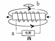 (3)如图丙所示,根据通电螺线管的磁感线方向,标出电源a端的正负极、小磁针b端的极性。