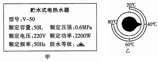 3、小明家新购置了一台电热水器,电热水器的铭牌如图甲所示。若自来水的温度