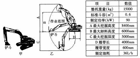 4、如图是某型号挖掘机的实物图(甲)和作业范围图(乙)以及部分相关数据表。请回答下列问题:(g=10N/kg)