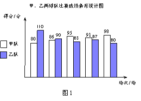 20.甲、乙两支篮球队在集训期内进行了五场比赛,将比赛成绩进行统计后,绘制成如图1、图2的统计图.