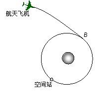 (D)航天飞机在B处由椭圆轨道进入空间站轨道时必须点火加速