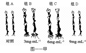 ①R点对应的浓度可能是4.5mg·mL-1;②若Q点对应的浓度为3 mg·mL-1,则S点对应的浓度为6 mg·mL-1;③P点所示为组A的结果;④T点所示为组D的结果;⑤乙图说明α-萘乙酸的作用具有两重性。
