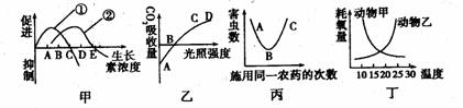 A.农业上常用一定浓度的生长素类似物除去单子叶农作物中的双子叶植物杂草,甲图中①表示单子叶植物,选用的生长素类似物的浓度最好在D点左右