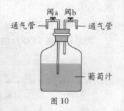 小李尝试制作果酒,他将葡萄汁放入已灭菌的发酵装置中进行试验(见图10),恰当的做法是