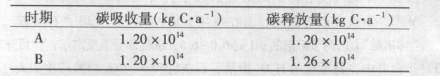 气候变化与生态系统的碳循环密切相关。下表为A、B两个不同时期陆地生态系统与大气环境的碳交换情况。