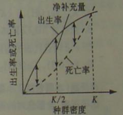 右图表示出生率、死亡率和种群密度的关系,据此分析得出的正确表述是
