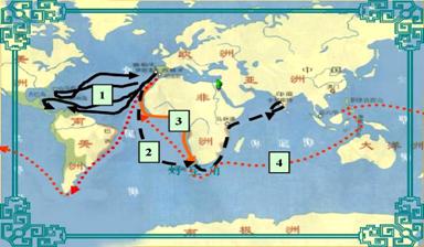 15--16世纪之交是西欧各国积极开拓通往东方新航路的“大航海”时代。下列选项中,对下面地图的描述正确的是