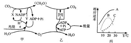 (3)图丙是小麦光合作用速率和呼吸作用速率随温度变化的趋势图。曲线B表示小麦 。曲线C走势的含义为 。由图中信息可知,细胞呼吸和光合作用的 不同。
