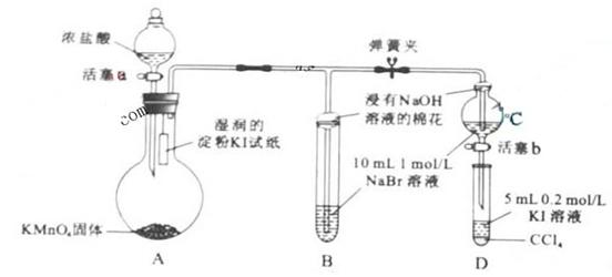 为验证卤素单质氧化性的相对强弱,某小组用下图所示装置进行试验(夹持仪器已略去,气密性已检验)。![]()