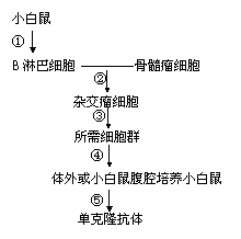 ①通过①过程得到B淋巴细胞从小白鼠体内分离之前,应对小白鼠进行的处理是_________,该处理的实质是在小白鼠体内发生_________过程.