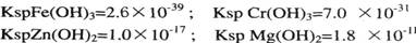 3、在溶液中有浓度均为0.0lmol/L的Fe3+、Cr3+、Zn2+、Mg2+等离子,已知: