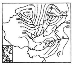 6.下图是我国部分地区春季某时的气压分布图,读图分析完成下列要求:(8分)