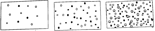 8.某科研机构利用遥感卫星长期监控一个生态系统的演变,以下三幅示意图是根据不同时期卫星所拍摄的该生态系统照片绘制而成的。图中形状和颜色均相同的点表示同一物种,不 同形状或颜色的点表示不同的物种,点的疏密表示单位面积上种群个体数量的多少。据图所作的结论正确的是