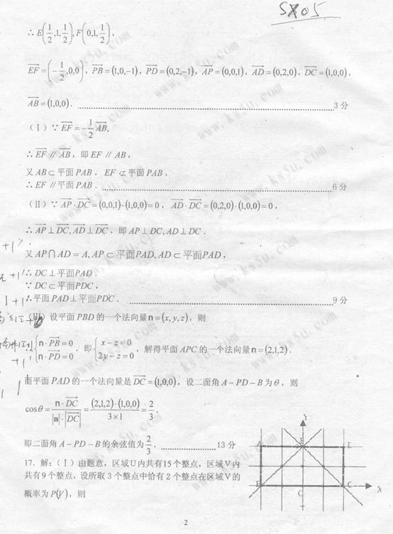 3个整点,求这些整点中恰有2个整点在区域V的概率;