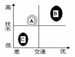 下图为北京、重庆、西藏三地工业发展条件,结合图回答6-7题: