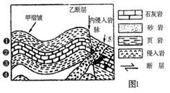 右图为某处地层未曾倒置的地质剖面图,其中①