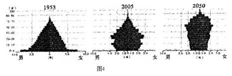 读“中国大陆人口数量在世界人口总数中的比例表1”及“中国不同时期的人口年龄结构示意图(图4)”完成7~8题。