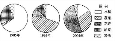 张某承包了O.5公顷耕地.种植结构变化如下图。当地1月平均气温3℃。完成19-20题。