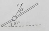 ,质量为m的小球套在杆上,在大小不变的拉力作用下,小球沿杆由底端匀速运动到顶端,为使拉力做功最小,拉力F与杆的夹角a=____,拉力大小F=_____。